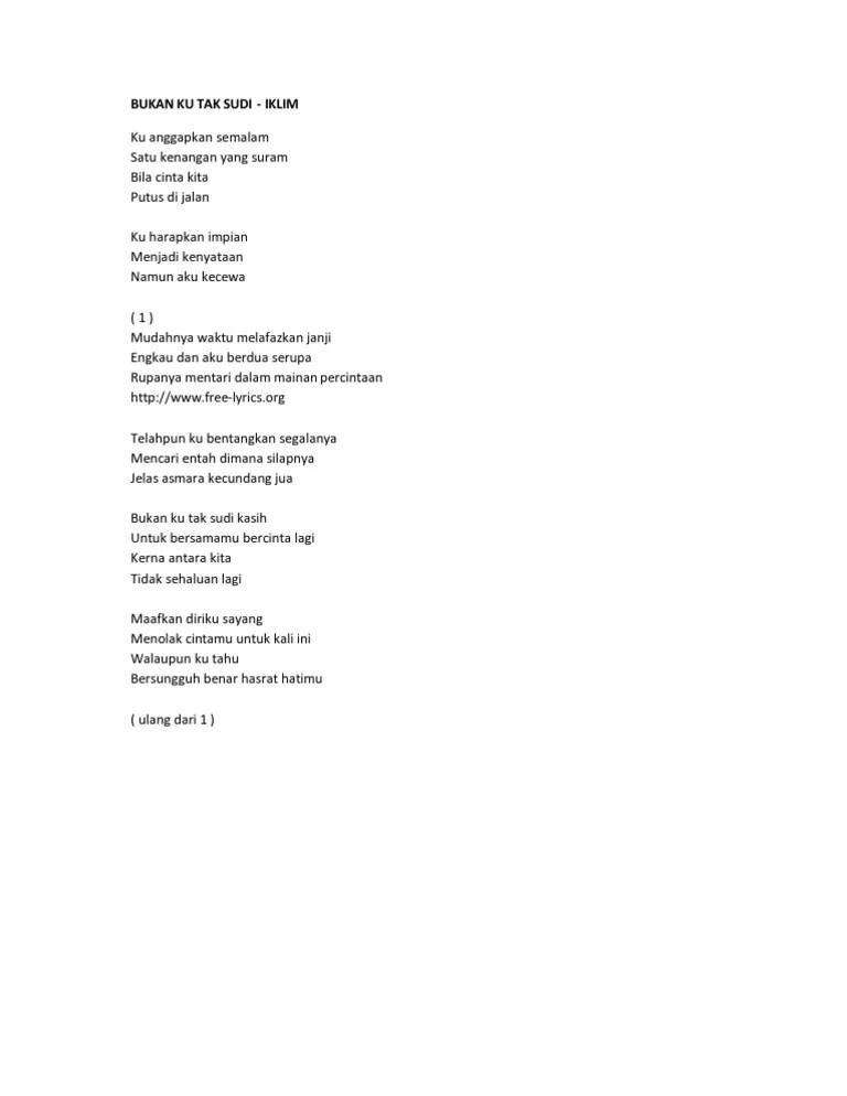 Am dm g ku anggapkan semalam satu. Bb c a dm bb a dm a dm gm ku anggapkan semalam c f satu kenangan nan suram bb a bb a bila cinta kita putus di jalan dm gm c f ku harapkan impian . F g am f e am e. Dm am perlahan kau lepaskan f pegangan tanganku e am . Am am dermaga saksi bisu. Bb a bb a bila cinta kita putus di jalan C kenangan suram f e f e Layanan mobile dari situs entertainment terbesar indonesia, kapanlagi.com. Dm gm ku anggapkan semalam. C f satu kenangan yang suram. Chords for iklim bukan ku tak sudi. Dm gm ku anggapkan semalam F e waktu ku kecup keningmu.